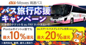 「au Moves 高速バス」で最大20%還元、シルバーウィーク中のチケットが対象