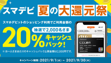 auじぶん銀行、スマホデビット利用すると抽選で20%キャッシュバック