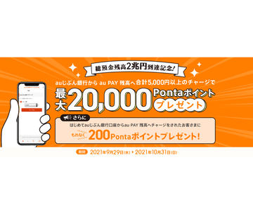 auじぶん銀行で最大2万ポイントが当たるキャンペーン、10月31日まで