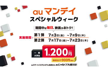 auマンデイが期間限定で拡大、7月中の2週間は毎日映画が1200円