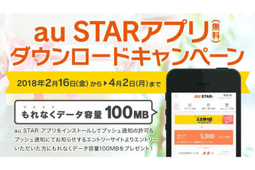 「au STARアプリ」、ダウンロードで100MBをプレゼントするキャンペーン