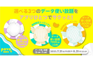 povoから“3連休に使える”「データ使い放題(3日間)790円」、期間限定で提供