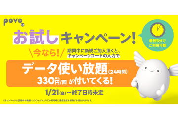 「povo2.0お試しキャンペーン」開始、新規加入で24時間データ使い放題に