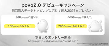 KDDI、「povo2.0デビューキャンペーン」開始 最大20GBのデータがプレゼント