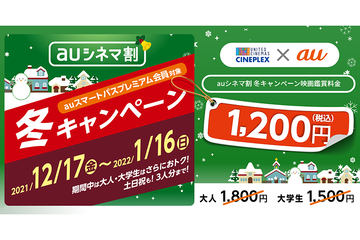 auスマパスプレミアム限定、1200円で映画鑑賞できる「auシネマ割 冬キャンペーン」