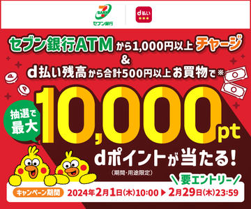 「d払い」、セブン銀行でチャージと残高利用で最大1万ポイントが当たるキャンペーン