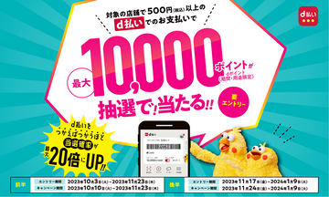 「d払い」、抽選で5000人に1万ポイント当たるキャンペーン