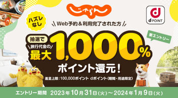 ドコモ、「じゃらんnet」で最大1000%還元の抽選キャンペーン