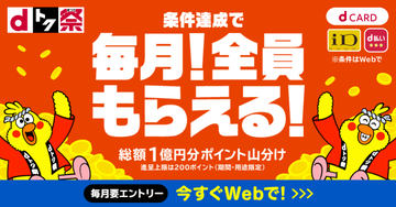 ドコモが毎月1億円分の山分けキャンペーン、「dカード」「iD」「d払い」で