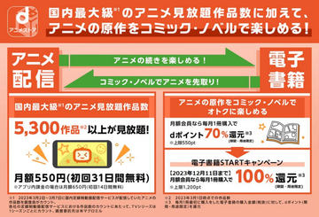 ドコモ「dアニメストア」、アニメ原作コミックなどの電子書籍販売がスタート