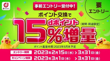 「他社ポイントをdポイントに交換」で15%アップ、3月にキャンペーン