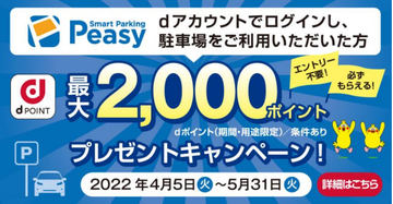 駐車場アプリ「Smart Parking Peasy」がdポイントに対応