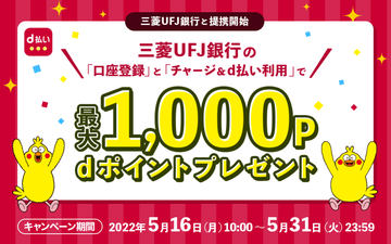 「d払い」が三菱UFJ銀行からのチャージに対応、最大1000ポイント還元も