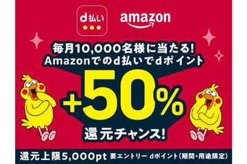 ドコモ「Amazon」でのd払い決済で最大50%ポイント還元、毎月1万人に