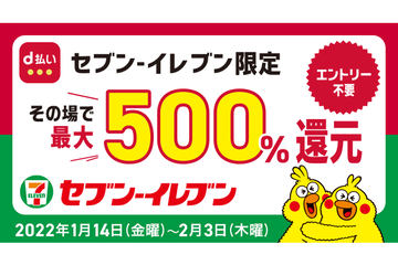 セブン-イレブンで「d払い決済」すると最大500%還元、14日~