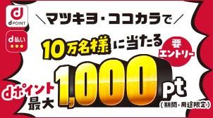 10万人にdポイントプレゼント、マツキヨとココカラファインの買い物で