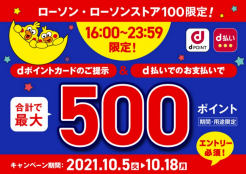 ドコモ、夕夜間帯のローソンでdポイントがもらえるキャンペーン