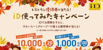 「iD」の利用で、すかいらーくの優待券が最大1万円分当たるキャンペーン、11月30日まで