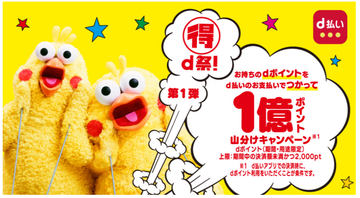 ドコモの「d払い」でdポイント払いすると“ポイント1億円分を山分け”、6月22日から