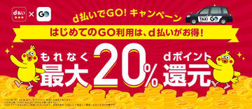 「d払い」でタクシーアプリ「GO」、初回利用で最大20%還元