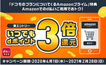 Amazonでd払いを利用するとポイント3倍のキャンペーン、来年2月末まで