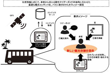 ツアーバス観光にタブレットを活用、ドコモとJTB沖縄が実証実験