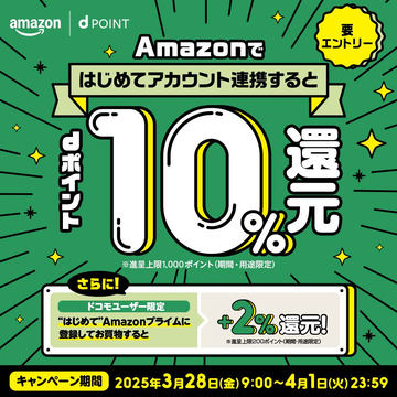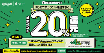 Amazonとdアカウントを初めて連携すると、dポイントが20%還元されるキャンペーン