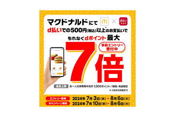 ドコモ「d払い」、マクドナルドでdポイント最大7倍のキャンペーン