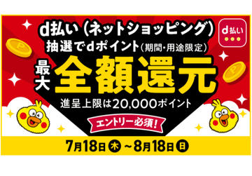 「d払い」、ネットの買い物で最大全額還元のチャンス 8月18日まで