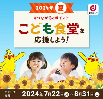 ドコモ、「dポイント」会員が参加するだけでこども食堂に食事を寄付する取り組み