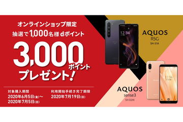 「AQUOS sense3」購入で500名にdポイント4000円分、ドコモオンラインショップ