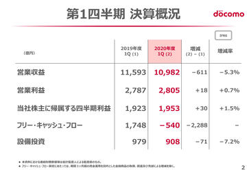 NTTドコモの20年度第1四半期決算、減収増益からのスタート
