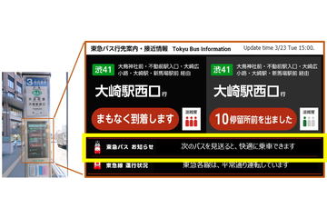 ドコモと東急バス、停留所サイネージにメッセージを配信し混雑を回避する実証実験