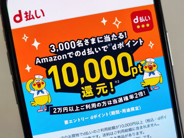 ドコモ「d払い」、Amazonで買い物すると1万ポイントが当たる