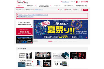 ドコモオンラインショップ、オリジナルグッズプレゼントや購入機種に応じたキャンペーン