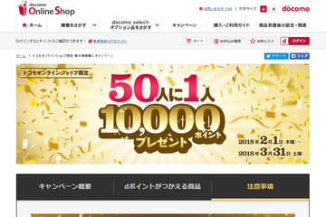 ドコモオンラインショップ、50人に1人に1万dポイントプレゼント