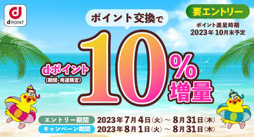 ドコモ、dポイントへの交換レートが10%増になるキャンペーン
