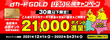 ドコモの「dカード GOLD」、20歳~30歳の入会で最大1万ポイントプレゼント