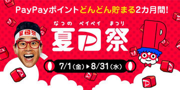 「夏のPayPay祭」は本日1日から、最大100%還元のペイペイジャンボなど