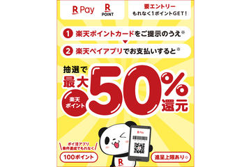 「楽天ペイ」「楽天ポイントカード」で最大50%ポイント還元、9月30日まで