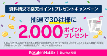 楽天モバイル、法人向け資料請求で2000ポイント当たるキャンペーンを再開
