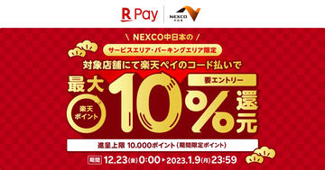 楽天ペイ、年末年始にNEXCO中日本のSA・PAで買い物すると最大10%還元
