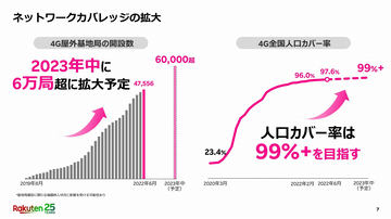楽天モバイル、2023年度中に基地局6万超、人口カバー率は99%超へ