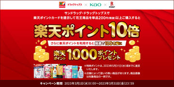 「楽天ポイントカード」、サンドラッグなどの花王商品購入でポイント10倍
