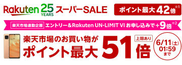 「Rakuten UN-LIMIT VI」申し込みで、楽天市場ポイント5倍キャンペーン