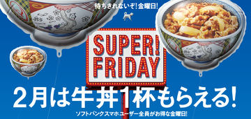 ソフトバンク「SUPER FRIDAY」で吉野屋の牛丼を無料に、2月の毎週金曜日