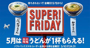 5月の金曜日は丸亀製麺のうどんプレゼント、ソフトバンクの「SUPER FRIDAY」