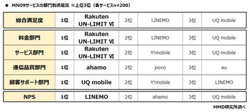 MNOの満足度調査、「Rakuten UN-LIMIT Ⅵ」が総合トップ