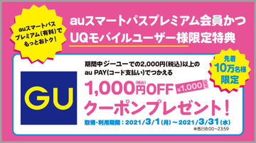 「UQ mobile」利用者にGUの1000円引きクーポンプレゼントキャンペーン