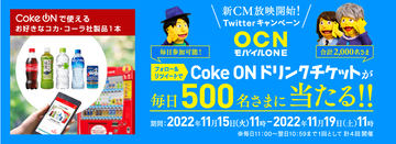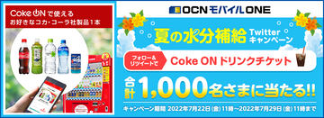 OCN モバイル、「Coke ON ドリンクチケット」を抽選で1000人にプレゼント